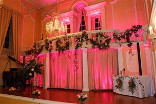 A magnificent Pedestal Display or two is simply a must and maybe a luxurious ‘all round’ arrangement tumbling over the font . . . oooooooh!