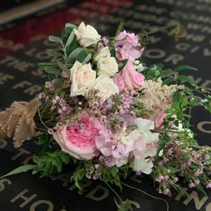 The bridal bouquet was soft and romantic complimenting Beatrice’s own colour tones perfectly in soft oyster pink. The gorgeous wedding bouquet handtied with hessian was just the right size and looked so good on the fitted bodice of her grandmother’s dress.