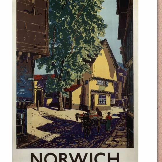 A RAILWAY POSTER card - Norwich, Elm Hill 1923-1947