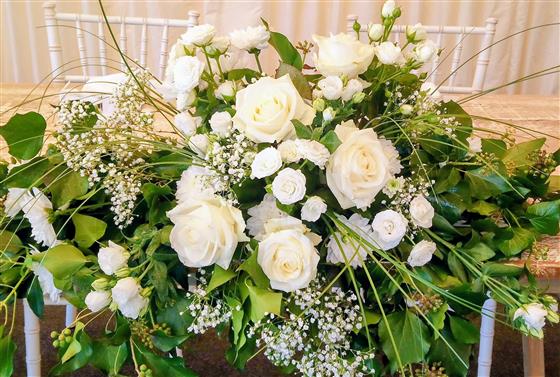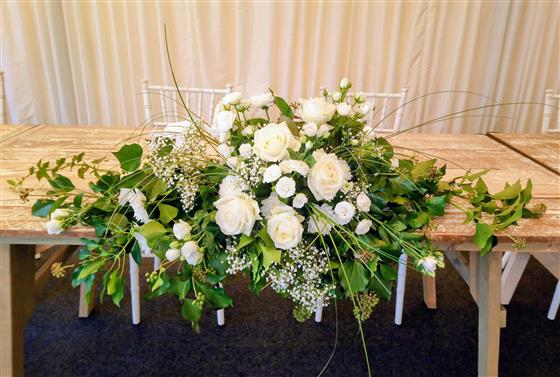 From the Marriage Ceremony table to the Top Table this cascading long & low display, naturally arranged arranged in our Flowers Nicole style, is a show stopper and an an absolute must for your wedding day!