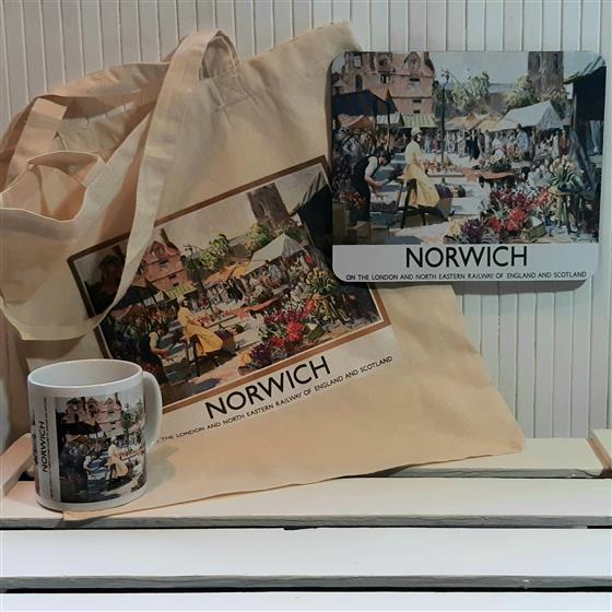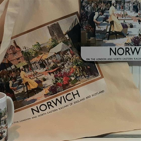 A comprehensive gift, this ‘Norwich Flower Market’ art print is created using digital printers resulting in a fabulous reproduction on a quality Mug, Mouse Mat & Tote Bag (items available separately).