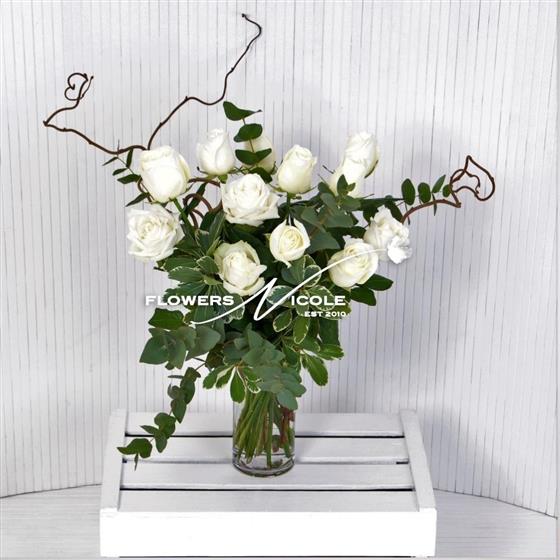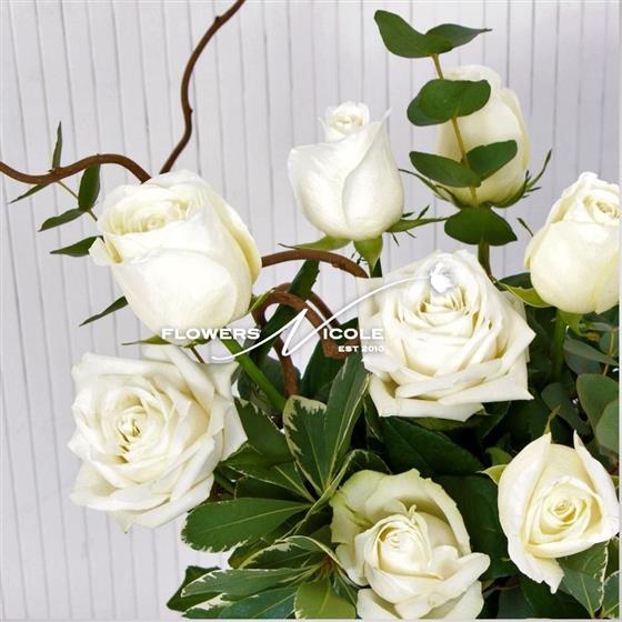 The Avalanche Rose is bred for it's beauty & longevity & white represents honesty & purity. Combined here with eucalyptus foliage which has a lasting aroma that relaxes and soothes we have the ultimate well-being bouquet.